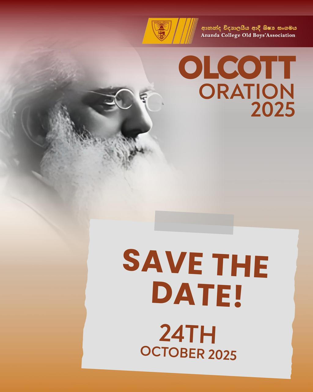 📅 SAVE THE DATE! The Olcott Oration 2025 Ananda College Old Boys’ Association (ACOBA) proudly presents the annual Olcott Oration 🗓 Date: 24th October 2025 ⏰ Time: 6:00 PM 📍 Venue: Kularatne Auditorium, Ananda College Featuring a distinguished Old Anandian orator—stay tuned for updates! #OlcottOration2025 #AnandaCollege #ACOBA...