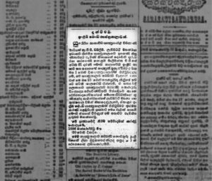 Notice about the meeting published in the “Sarasavisandaresa” on 23rd Oct, 1886